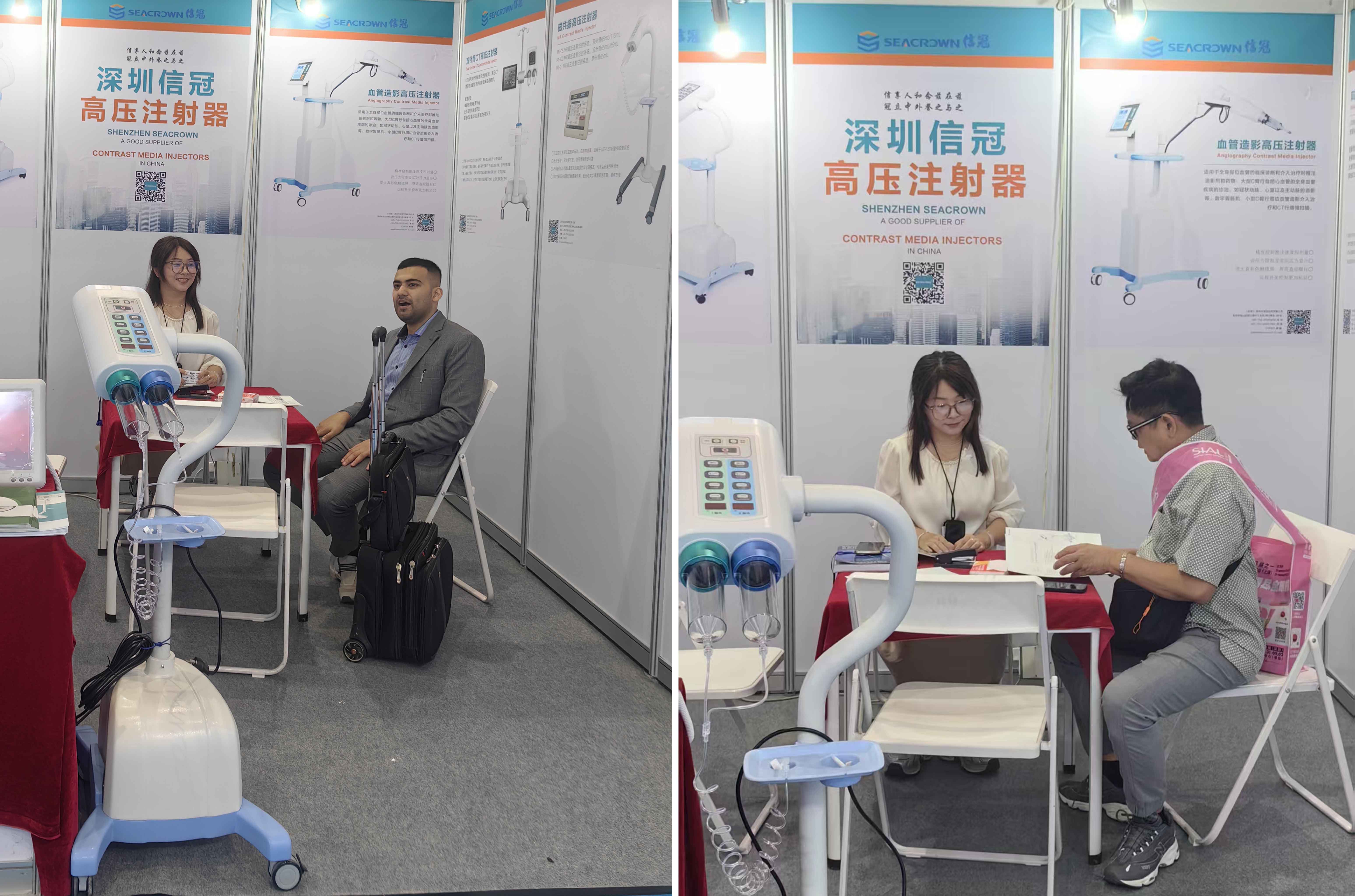 我們與客戶進行了多次深入交流。其中最引人注目的是客戶對我們的Zenith-C22 CT雙頭注射器的濃厚興趣。該注射器采用雙注射器設計,適用于復雜的CT掃描,并支持KVO等功能。